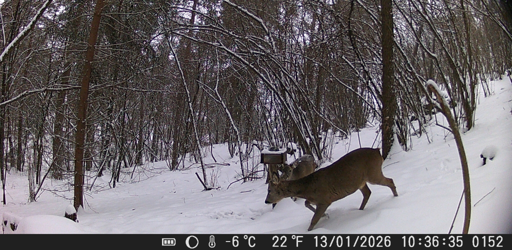 Keď sme pri batériách, tak táto fotopasca je napájaná štyrmi AA baterkami, ktoré mne osobne v silných mrazoch vydržali dva týždne bez toho, že by z indikátora ubudla čo i len jedna čiarka. Vydrží bez problémov silný vietor, dážď, sneh.