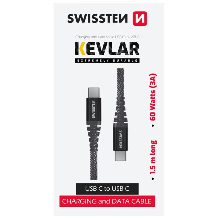 SWISSTEN KEVLAR USB-C/USB-C 3A 60W 1,5m antracit