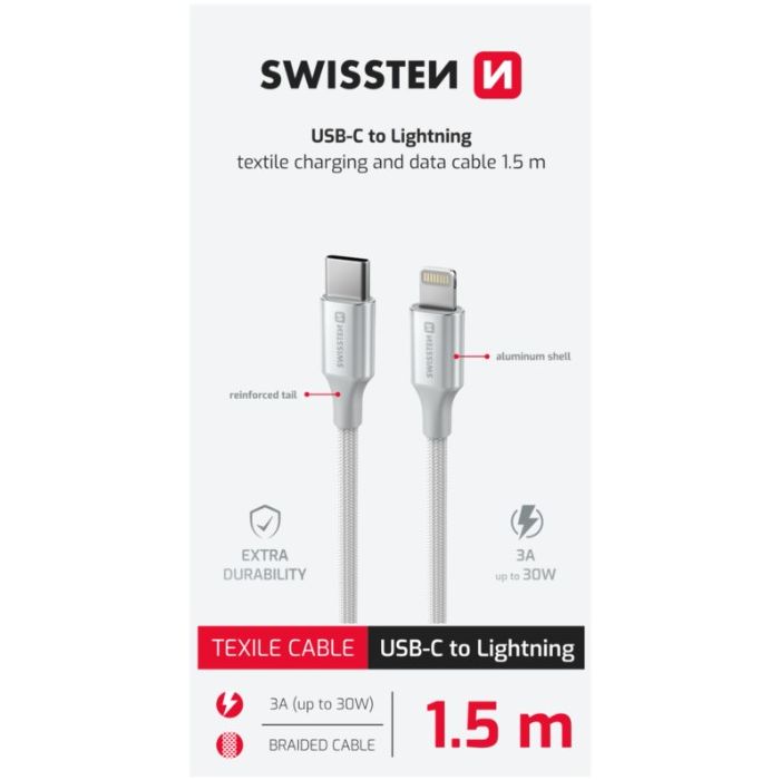 SWISSTEN TEXTILE II USB-C/Lightning 30W 3A 1,5m biely