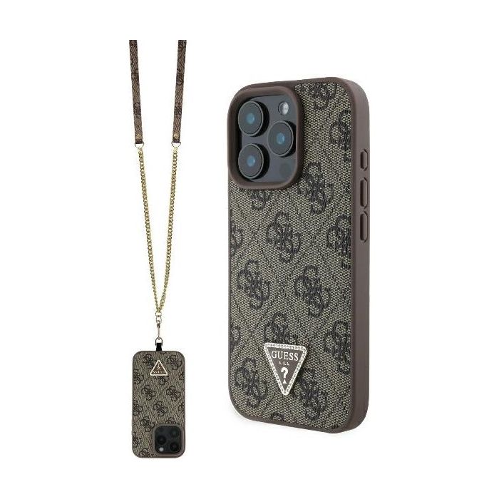 Obal Guess PU 4G Strass Triangle Metal Logo + Crossbody Apple iPhone 16 Pro GUHCP16LP4TDSCPW Brown